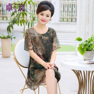 妈妈夏装中长款短袖连衣裙