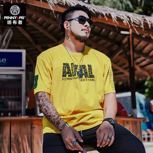 纺布者潮牌印花加肥宽松短袖t恤夏季男
